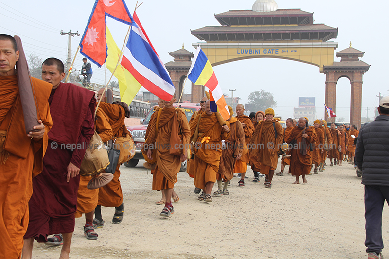 काठमाडौंबाट १८ दिनको पदयात्रापछि भिक्षुहरु लुम्बिनीमा [फोटो फिचर]