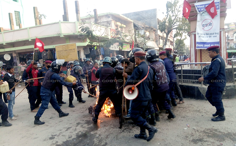 सुनसरीमा कांग्रेस-रास्वपा कार्यकर्ताबीच झडप, प्रहरीद्वारा लाठीचार्ज