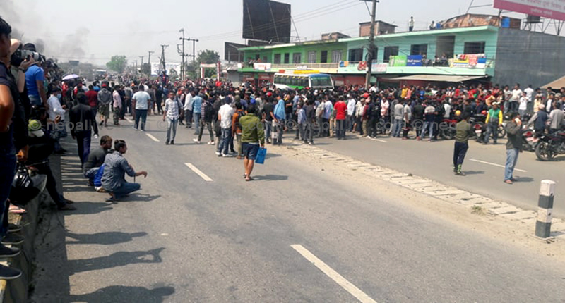 जिपकाे ठक्करबाट बालककाे मृत्यु भएपछि चितवनकाे रत्ननगरमा ४ घन्टादेखि सडक अवरुद्ध