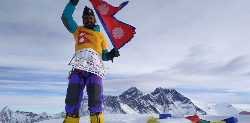 जनकपुरका 'साइकल यात्री' रन्जित साहद्वारा आमादब्लम हिमालको आरोहण