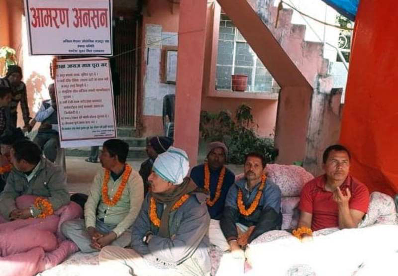 महोत्तरीमा मजदुरहरूको आमरण अनसन जारी