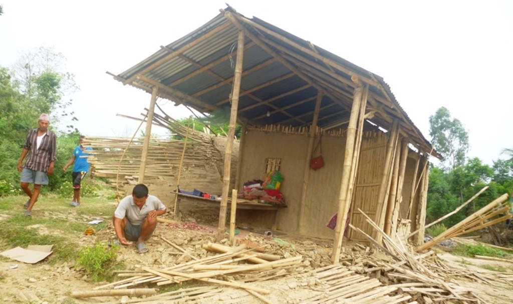प्रहरीको गस्तीबीच हात्तीले भत्कायो १० घर, ३ लाखको क्षति
