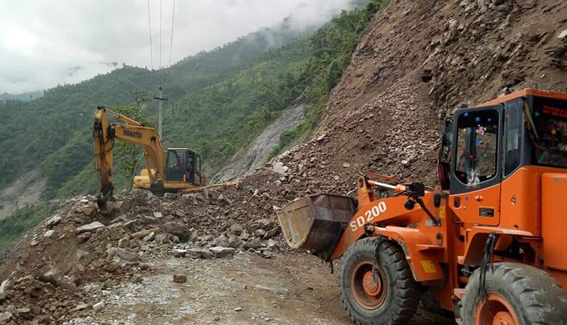 मौवाखोलामा पहिरो खस्दा साढे ४ घन्टादेखि पृथ्वी राजमार्ग अवरुद्ध