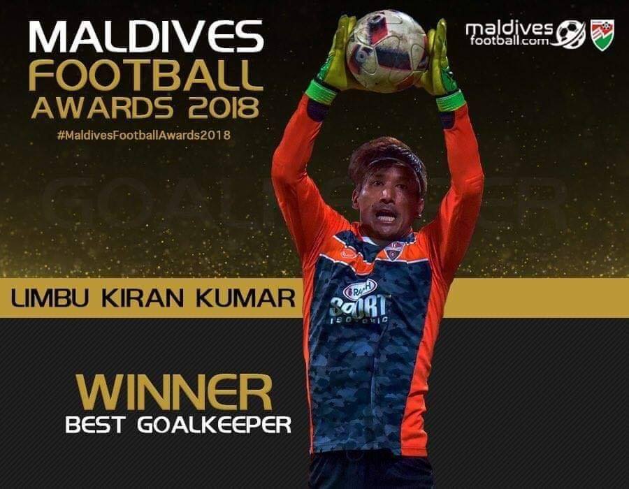 राष्ट्रिय टिमका नम्बर एक गोलकिपर किरण बने माल्दिभ्स फुटबल अवार्डमा उत्कृष्ट गोलकिपर