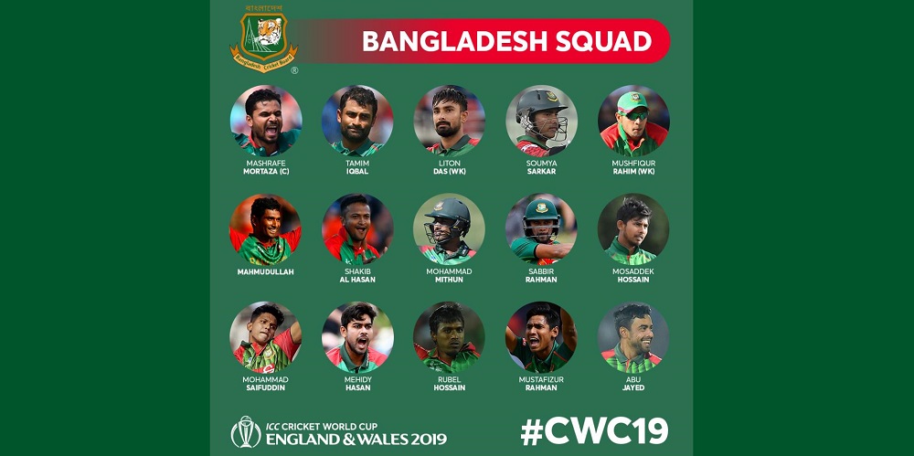 विश्वकपका लागि बंगलादेशको राष्ट्रिय टिम घोषणा