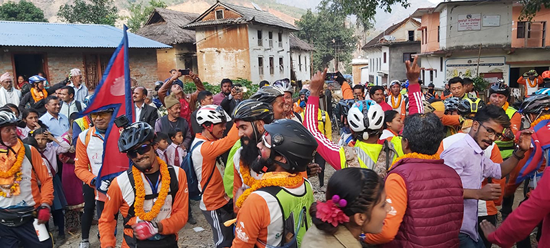 'राइड थ्रु सिन्धुलीगढी'का साइकलयात्रीकाे भव्य स्वागत [फाेटाे फिचर]