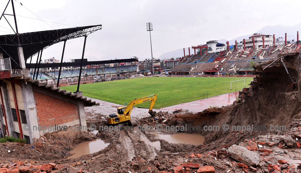 तङ्ग्रिँदै क्षतिग्रस्त खेलकुद संरचना, दशरथ रंगशालाको पुनःनिर्माण ७० प्रतिशत सकियो