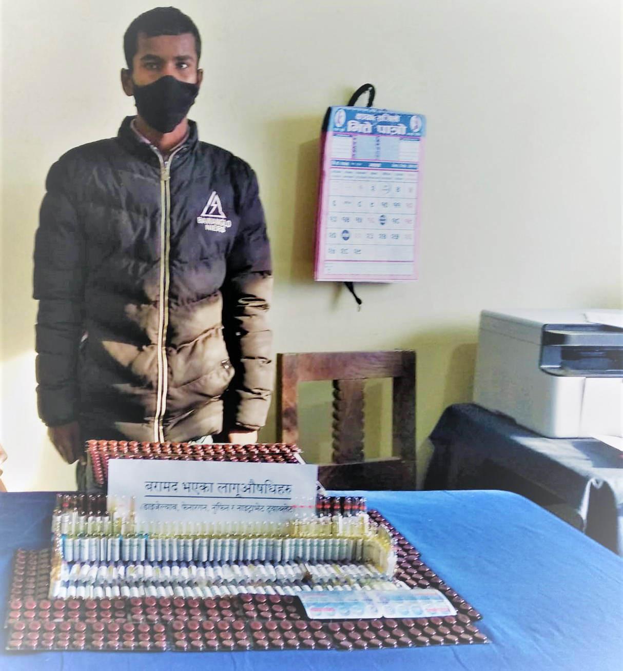 भारतबाट नेपालतर्फ लागुऔषध ओसार–पसार गर्ने एक युवक पक्राउ