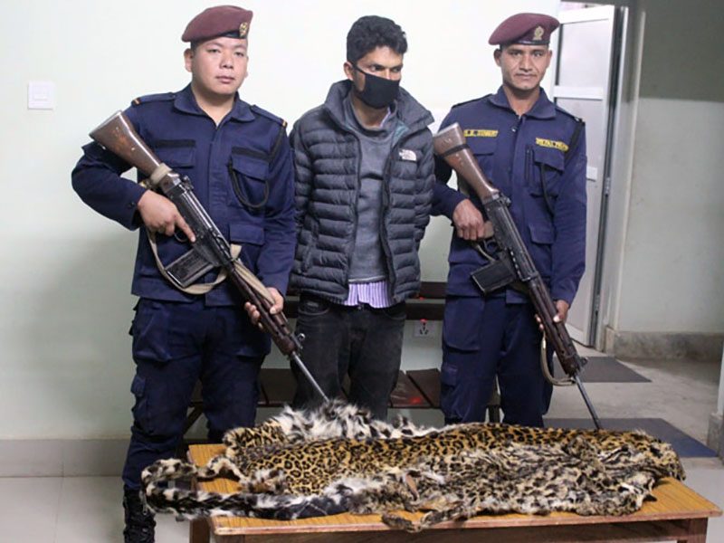 सुर्खेतमा दुई थान चितुवाको छालासहित एक युवा पक्राउ