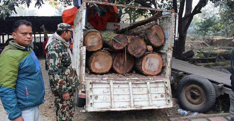काठ तस्करी गरिरहेको अवस्थामा सेनाका कर्मचारीसहित ४ जना पक्राउ