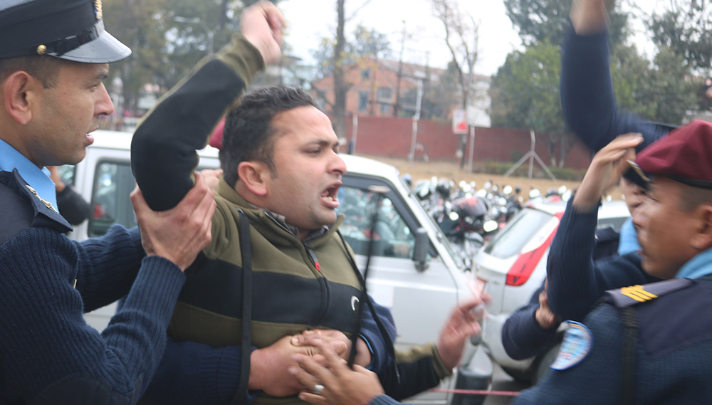 प्रधानमन्त्री ओलीलाई कालो झन्डा देखाउने नेविसंघका ४ नेता पक्राउ
