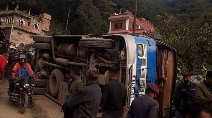 काठमाडौंको साँखुमा बस दुर्घटना, ३ जनाको मृत्यु