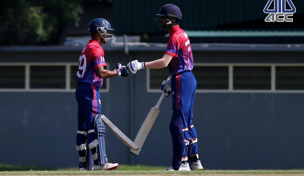 यसअघिको आफ्नो पहिलो खेलमा नेपालले चीनमाथि १० विकेटको सानदार जित निकालेको थियो। चीन २३ दशमलव १ ओभरमा ५३ रनमा अलआउट भएको थियो। नेपालले ५ ओभरमा बिना विकेट लक्ष्य भेट्टाएको थियो।