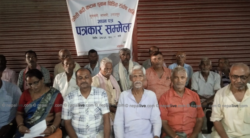 सन् १९६४ मा कोसी ब्यारेजको निर्माण पूरा भएको थियो। पुल र बाँध निर्माणका कारण सुनसरीको चतरादेखि सप्तरीको कुनौली बोर्डरसम्म दुवै साईडको तटबन्ध भित्रपर्ने ४८ हजार ६ सय ९५ बिघा ३ कठ्ठा १७ धुर जग्गा कटान र डुबानमा परेको तथ्यांक छ। त्यसबापत पाउनु पर्ने मुआब्जा हालसम्म पनि नपाएको पीडितहरू बताउँछन्।