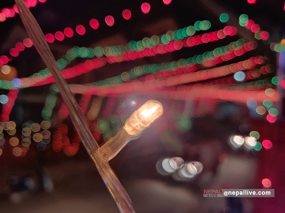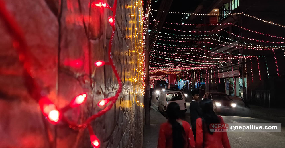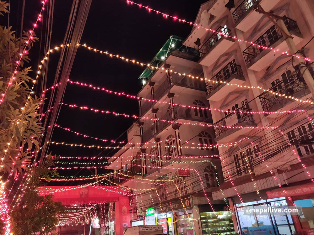 कालिकास्थानदेखि डिल्लीबजार सडक जोडिने ठाउँसम्म पिलपिले बत्तीले सझाइएको छ। बीचमा पर्ने भगवती मन्दिरमा साँझको दर्शन गर्न आउने स्थानियदेखि गन्तव्यमा हिँडेका पैदल यात्रु सम्म तस्बिर खिच्दै रमाइरहेका छन्।