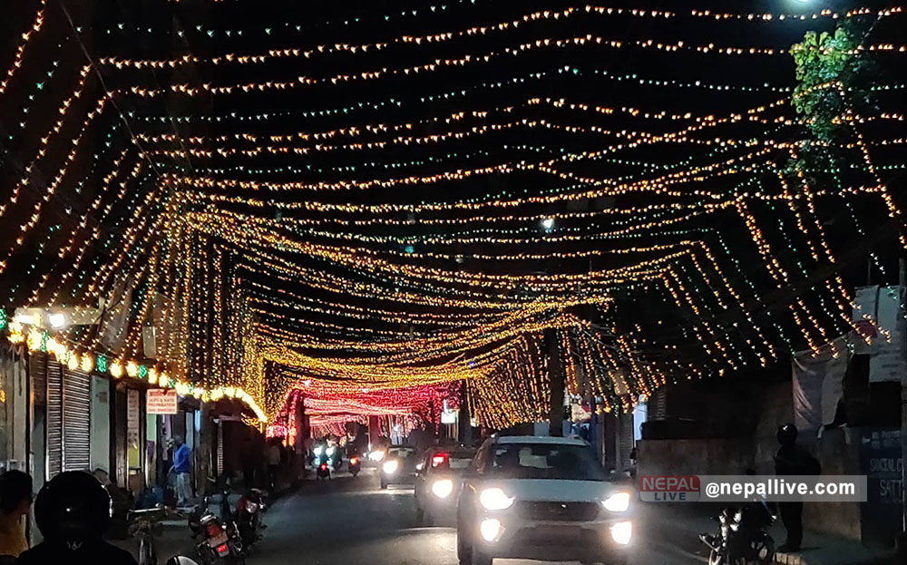दसैंका लागि सजाइएको सडक छठसम्मै झलमल्ल रहने स्थानीयको भनाइ छ।
