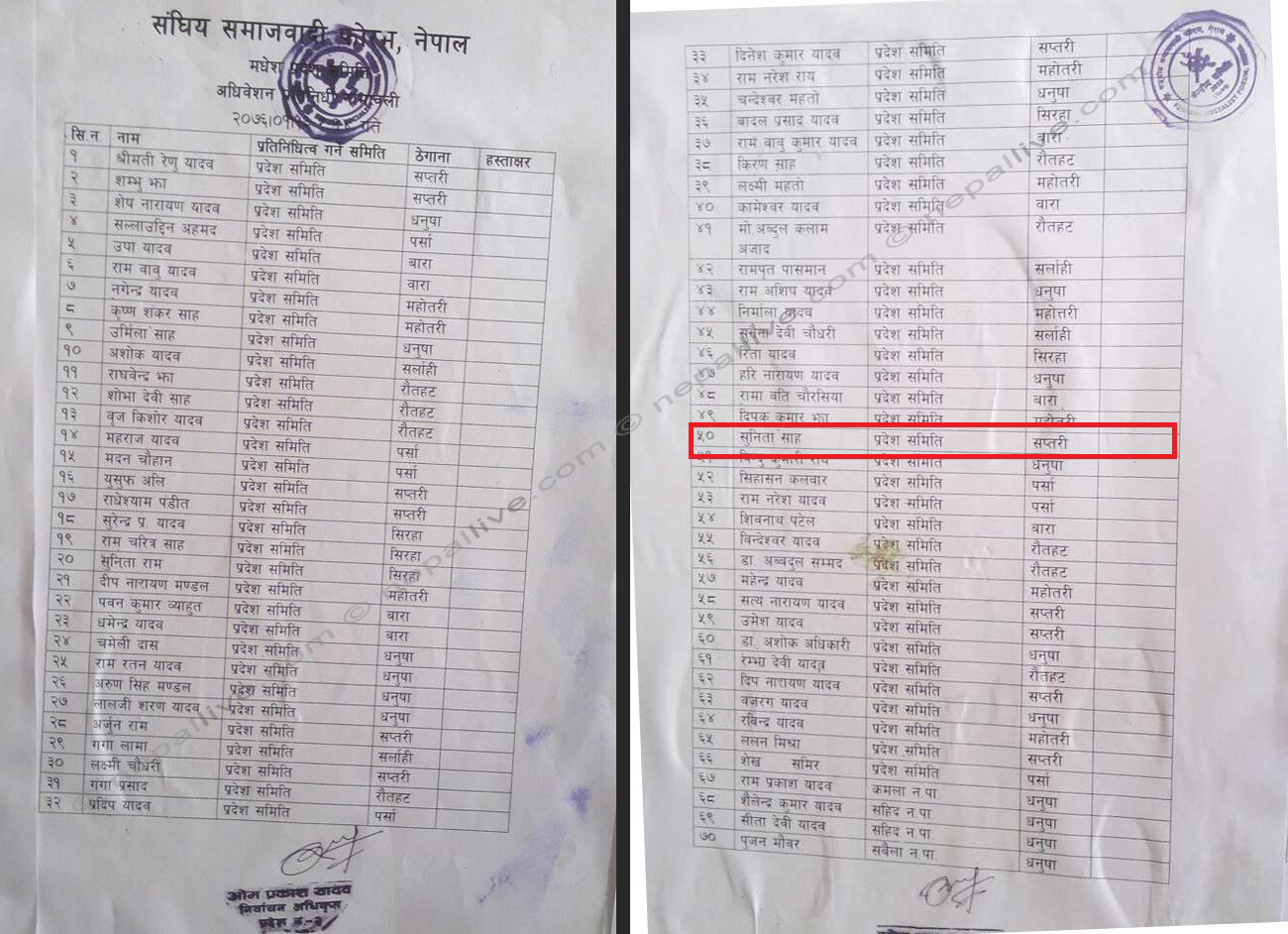 प्रहरीले शुक्रबार समाजवादी पार्टीकी महिला नेतृ तथा अन्तरपार्टी महिला सञ्जाल सप्तरीकी जिल्ला अध्यक्ष सुनिता साहलाई पक्राउ गरेको छ। राजविराज-६, खरसालटोलस्थित निवासबाटै पक्राउ परेकी साह सोही पार्टीबाट सञ्जालमा प्रतिनिधित्व गरिरहेकी छिन्।