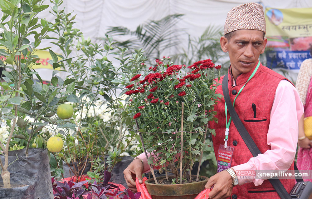 काठमाडौं- खुलेको आकाश। मनै लोभ्याउने गरी फूलेका सयपत्री, गोदावरी र मखमलीहरु। चाडपर्वको मौसम शरदमा मात्र होइन, उनका बगैँचामा सदाबहार फूल फूल्छन्। मौसमी फूलहरु पनि लगाउँछन्। फूलकै सुगन्ध मिसिएको हावा बहन्छ स्वयम्भूनाथ नर्सरी वरिपरि।