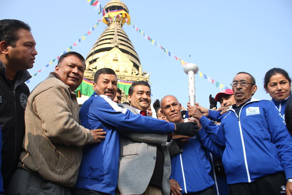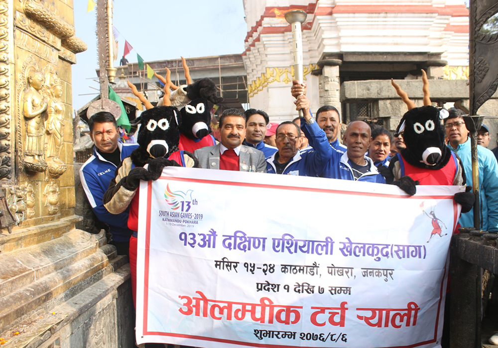 काठमाडौं- दक्षिण एसियाली खेलकुद (साग) को १३ औं संस्करणको उद्घाटनको दिन मंसिर १५ गते दीप प्रज्ज्वलन गरिने ओलम्पिक टर्चको र्याली शुक्रबारदेखि सुरु भएको छ। सातै प्रदेशका मुख्य शहरमा पु¥याइने टर्चको र्याली स्वयम्भु स्तुपादेखि सुरु गरिएको हो।
