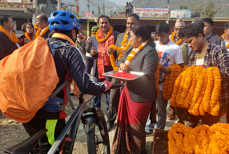 सिन्धुली- राइड थ्रु सिन्धुलीगढी साइकल यात्राको टोली सिन्धुलीको मुलकोट पुगेको छ। साइकल यात्रामा २ सय ११ जना यात्री सहभागी छन्।