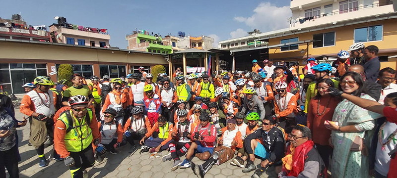 टाेलीमा पुरुष १ सय ५० जना र महिला २१ जना साइकलयात्री छन्। ३० जना सहयोगी छन्। काठमाडौंको पशुपति मन्दिरदेखि ऐतिहासिक सिन्धुलीगढी हुँदै जनकपुरको जानकी मन्दिरसम्म हुने साइकल यात्रामा निस्केकाे टाेलीलाई पर्यटनमन्त्री योगेश भट्टराई, पूर्वमन्त्री हरिवोल गजुरेल, सांसद गणेश पहाडीलगायतले पशुपतिनाथ मन्दिर परिसरबाट विदाइ गरका थिए।