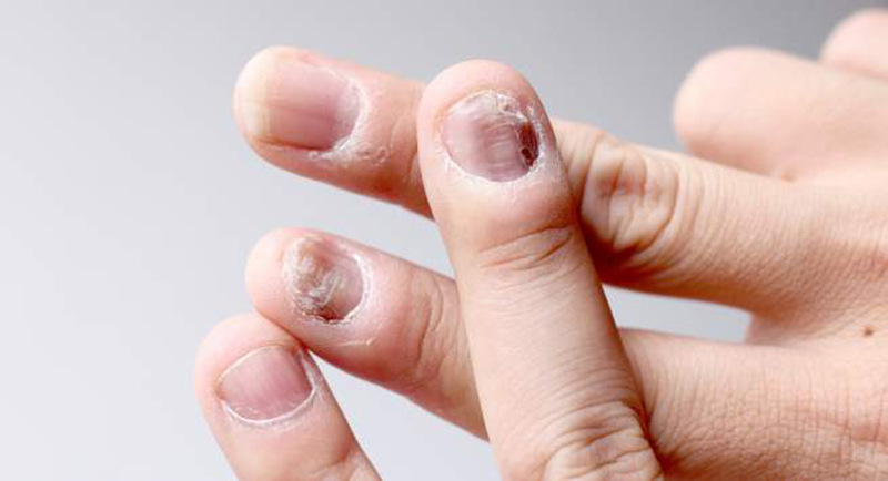 छालाको सक्रमणः नङ टोक्ने मानिसलाई पारोनाइसिया नामक छालाको संक्रमण हुन्छ। यो संक्रमणले नङ वरपरको छालालाई असर गर्छ। नङ रातो हुने र नङ वरपरको मासु सुन्निने खतरा हुन्छ।