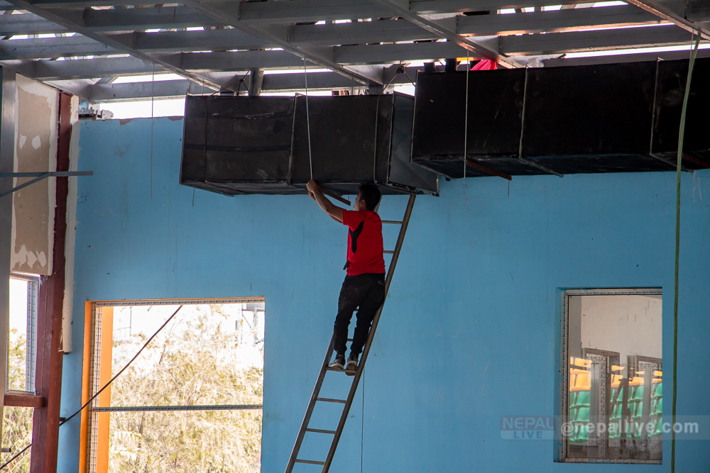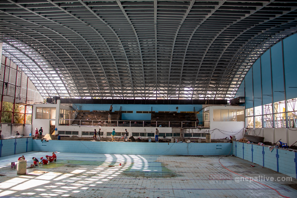 अहिले छाना हाल्ने काम अन्तिम चरणमा छ। स्वीमिङ पुलको उत्तर र दक्षिण भागमा बार हाल्ने काम पनि अन्तिम चरणमा छ।