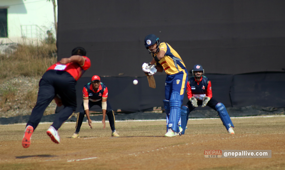 तेस्रो क्रममा ब्याटिङमा आएका हर्ष टन्कले २ बलमा १ रन, शिवम सिंहले ३३ बलमा ३३ रन, भिम सार्कीले २१ बलमा २१ रन, सोमपाल कामीले ८ बलमा ३ रन, शेर मल्लले ७ बलमा २ रन बनाए। अभिनाश बोहरा शून्यमै आउट भए। हरि चौहानले २० बलमा १२ रन बनाए।