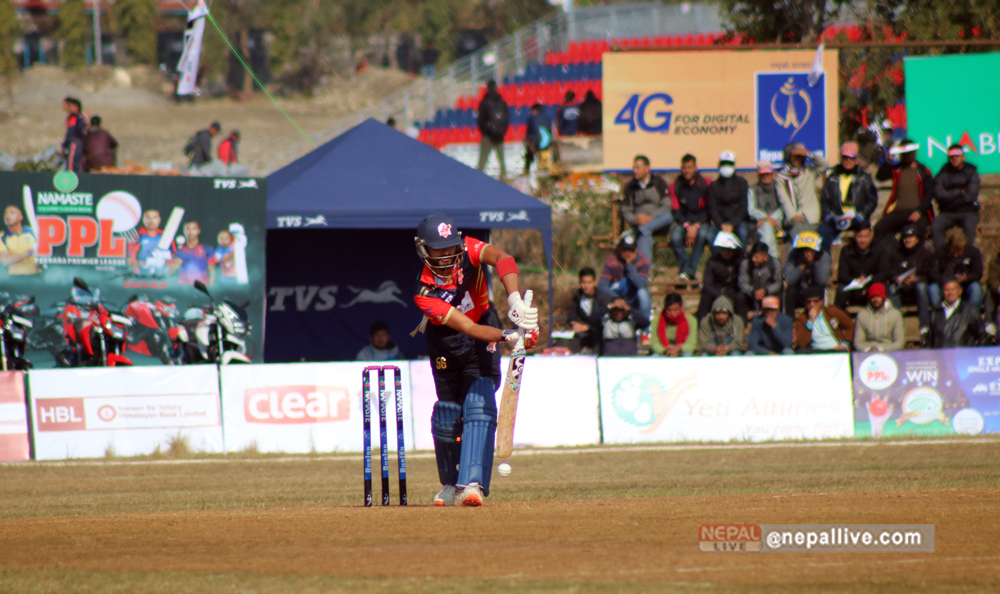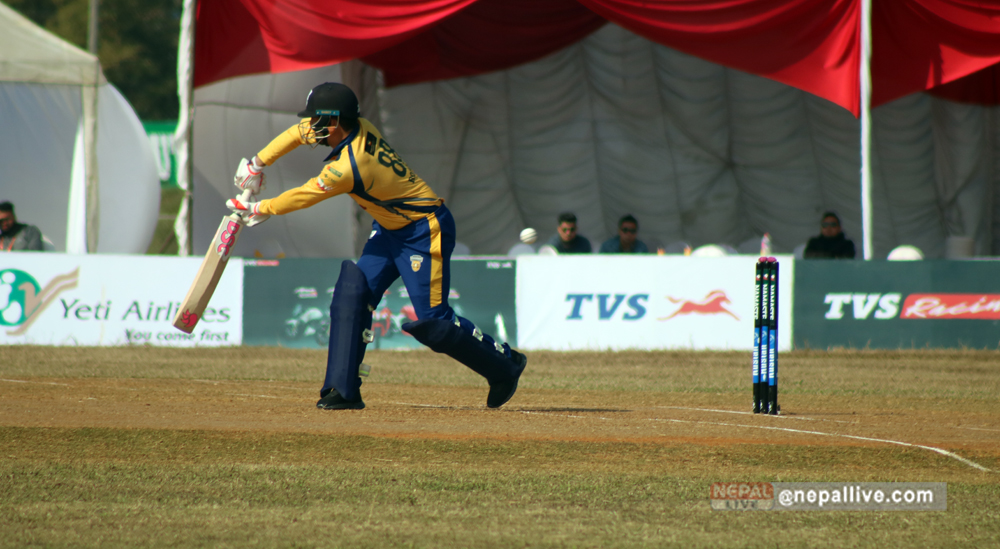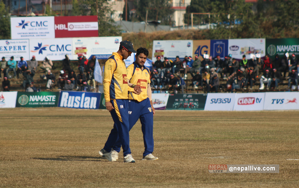 चितवनका लागि कप्तान पारस खड्का र रोहन मुस्ताफाले अर्धशतक बनाए। मुस्तफाले ५६ बलमा ७० रन बनाए। अविजित रहेका उनले ७ चौका २ छक्का हाने। २ बल खेलेका सन्नी पटेल ४ रनमा अविजित रहे।
