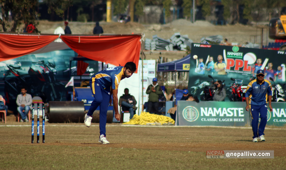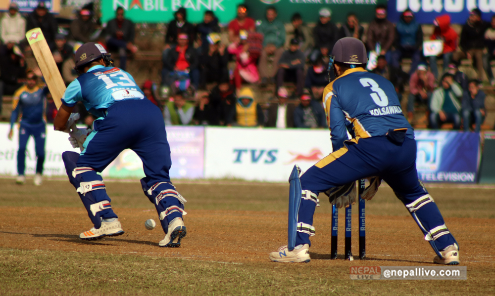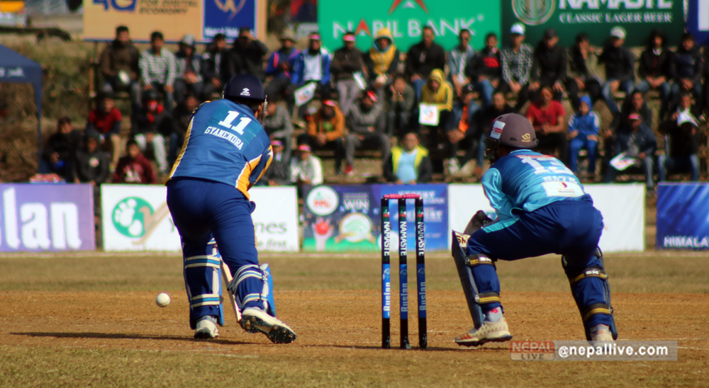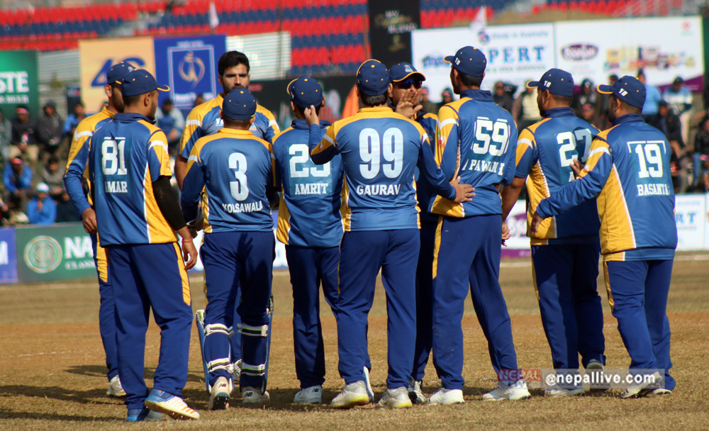 ओपनिङमा आएका गौरव तमोर ६ बल खेलेर बिना रन आउट भएका थिए। अमित श्रेष्ठले १५ बलमा १७ रन बनाए। सुवोथ भाटीले ९ बलमा १४ रन बनाए। विराटनगरका पुनित मेहराले दुई साथै नोमन खान, जितेन्द्र मुखिया र किशोर महतोले एक–एक विकेट लिए।