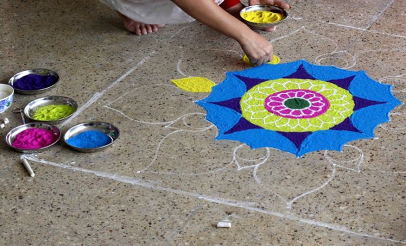 मिथिलाञ्चलमा मनाइने प्रत्येक पर्वमा बेग्लाबेग्लै लोककलाको प्रदर्शनी र चित्रांकन गर्ने कार्य अन्तर्गत माघे सङ्क्रान्तिका दिन बिहानै भक्तजनले चोखो भई प्रसन्न मुद्रामा भगवती मन्दिरका प्रवेशद्वार तथा आ–आफ्नो घर–आँगनमा कमलको फूलजस्तै श्रृङ्गार गर्छन्।