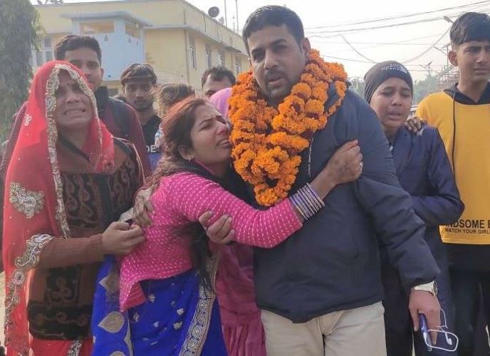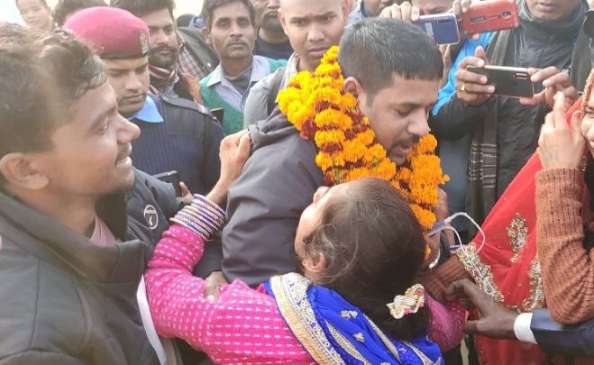 घर फर्किएपछि परिवारसँग उमेश यादव।