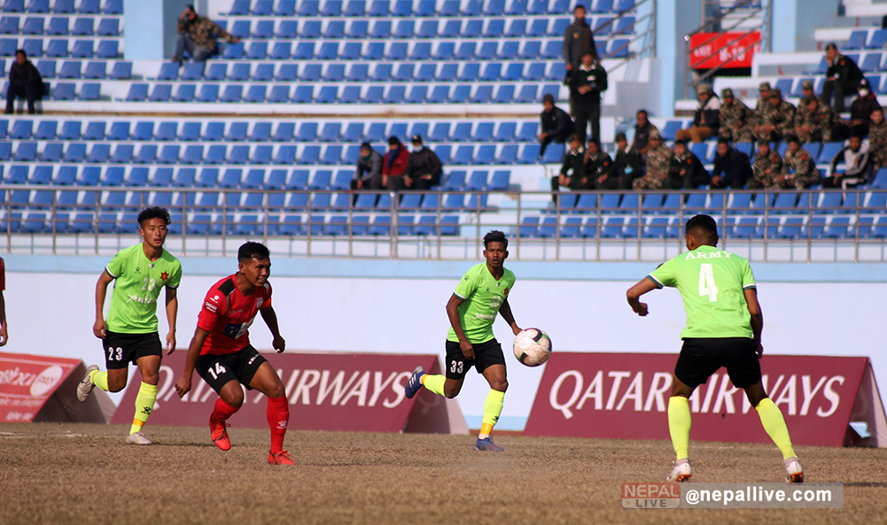 आठौँ खेलमा आर्मी एनआरटीसँग गोलरहित बराबरीमा रोकियो। नवौँ खेलमा आर्मीले जावलाखेल युथ क्लबलाई १-० ले हराएको थियो।