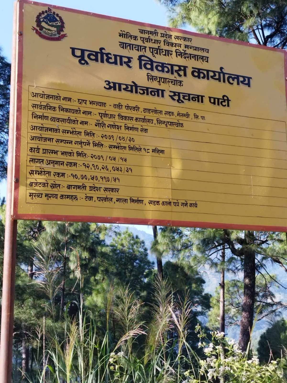 १० करोड ९० लाख २६ हजार ५३ रुपैयाँका उक्त आयोजना निर्माणका लागि गौरी गणेश निर्माण सेवासँग सम्झौता गरिएको थियो।