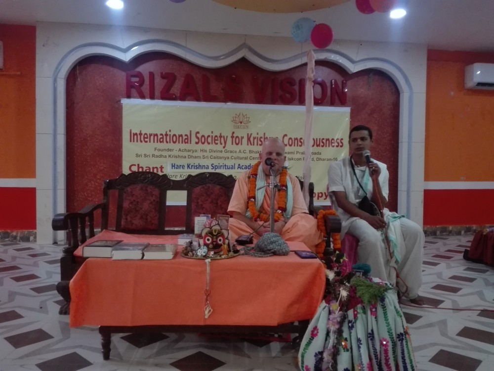 इटहरीमा अयोजीत कार्यक्रममा बेलायती गुरु ‘त्रिदण्डी सन्यासी श्री श्रीमती महाविष्णु स्वामी महाराज’ले हरे कृष्ण महामन्त्रको आधुनिक युगमा प्रयोग बारे चर्चा गरे। नेपाली भाषामा अक्कल राख्न नसके पनि दोभासेको माध्यम बाट उनले प्रवचन दिएका हुन्।