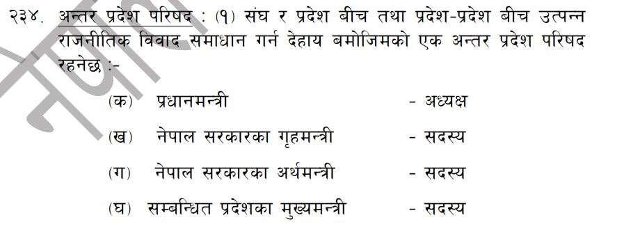 मुलुक संघीयतामा गइसकेपछि पहिलो पटक संघ र प्रदेशबीच बैठक हुन थालेको हो। संविधानको धारा २३४ मा संघ र प्रदेशबीच तथा प्रदेश–प्रदेशबीच उत्पन्न राजनीतिक विवाद समाधान गर्न देहायबमोजिमको एक अन्तर प्रदेश परिषद् रहने व्यवस्था रहेको छ।