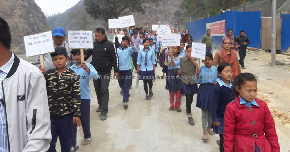 आयोजनाले स्वास्थ्य चौकी र विद्यालय अगाडिको पहरामा ‘ब्लास्टिङ’ गर्दा बालबालिका त्रसित हुने गरेका छन्। ‘अनुरोध गर्दागर्दै थाकिसक्यौं। स्वास्थ्य चौकी, विद्यालयको क्षेत्रमा यस्तो नगरिदिनुस् भनेर धेरै पटक गुनासो राख्यौं,’ धनेश्वरी माध्यमिक विद्यालयका शिक्षक सञ्जीव श्रेष्ठले भने, ‘कुरा राखेको केही दिनमा शान्त हुन्छ। फेरी सुरु भइहाल्छ।’