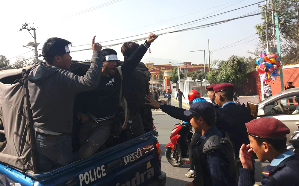 राष्ट्रपति विद्यादेवी भण्डारीको निवास शितल निवासअगाडि प्रदर्शन गरेको भन्दै १२ जना अभियन्तालाई प्रहरीले पक्राउ गरेको छ।