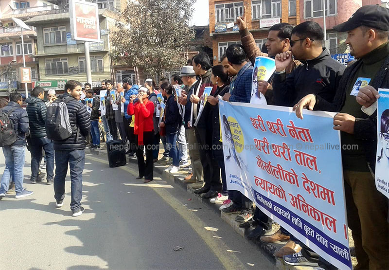 माइतीघरमा भेला भएका सामाजिक अभियन्ता, महिला अधिकारकर्मी, विभिन्न पेसामा आबद्ध कर्मचारी लगायतको समूहले दोषीलाई तत्काल पक्राउ गर्न माग गरेका छन्। उनीहरु सरकार भेटियो न्याय भेटिएन, थरीथरी नेता थरीथरी ताल लगायतका नारा लेखिएका ब्यानर र पम्प्लेट बोकेर बानेश्वरसम्म पुगेका छन्।