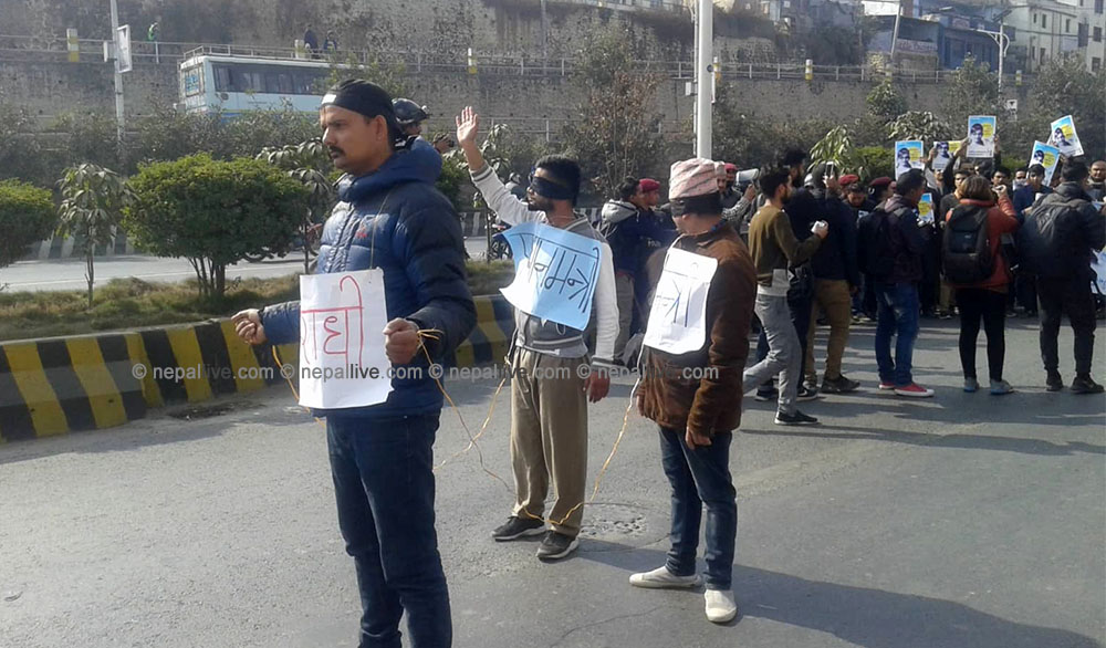 अपराधीले 'प्रधानमन्त्री' र 'गृहमन्त्री'लाई डोहोर्याइरहेको सांकेतिक प्रदर्शनसमेत गरेका उनीहरुले गृहमन्त्रीको राजीनामा पनि मागे।