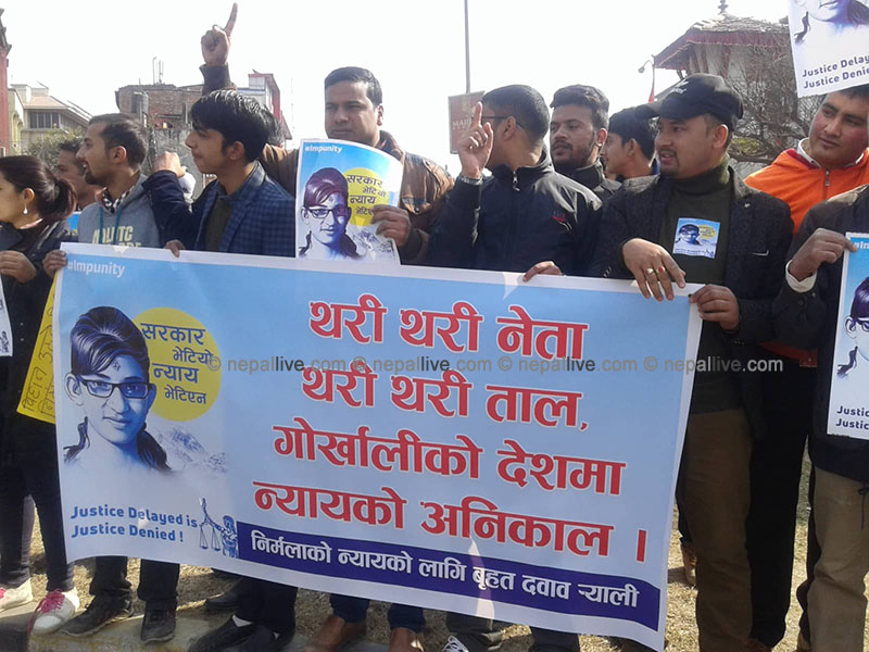 काठमाडौं- बलात्कारपछि हत्या गरिएकी बालिका निर्मला पन्तले न्याय पाउनुपर्ने माग गर्दै आज पनि काठमाडौंमा प्रदर्शन गरिएको छ।