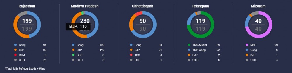 छत्तीसगढ, मध्यप्रदेश, मिजोरम, राजस्तान र तेलङ्गानामा विभिन्न समय गरी गत एक महिनाभित्र ४ चरणमा निर्वाचन सम्पन्न भएको थियो।