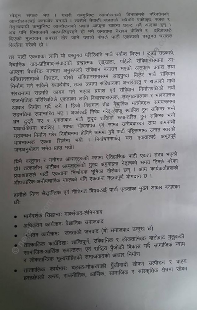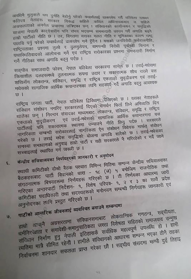 अध्यक्षद्वयको प्रतिवेदनमाथि नेता वामदेव गौतमले फरक मत राखेपछि सदस्यहरुलाई प्रतिवेदन अध्ययनका लागि समय छुट्याउँदै बैठक स्थगित भएको थियो।