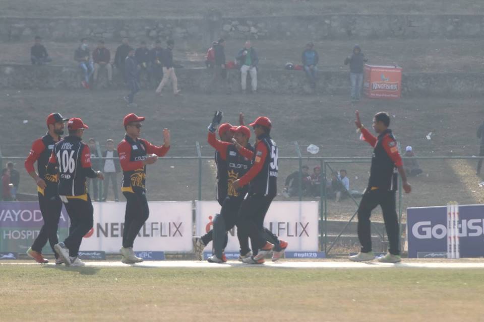 त्यसअघि टस हारेर पहिले ब्याटिङ गरेको काठमाडौं १ बल खेल्न बाँकी छदा १ सय ८ रनमा अलआउट भयो। काठमाडौंका लागि ओपनर तथा कप्तान रोहान मुस्ताफाले सबैभन्दा बढी ३२ रन जोडे। उनले २० बलमा ३ चौका र २ छक्का प्रहार गरे। अर्का ओपनर अमित श्रेष्ठ भने १२ बलमा ९ रन जोडेर आउट भए।