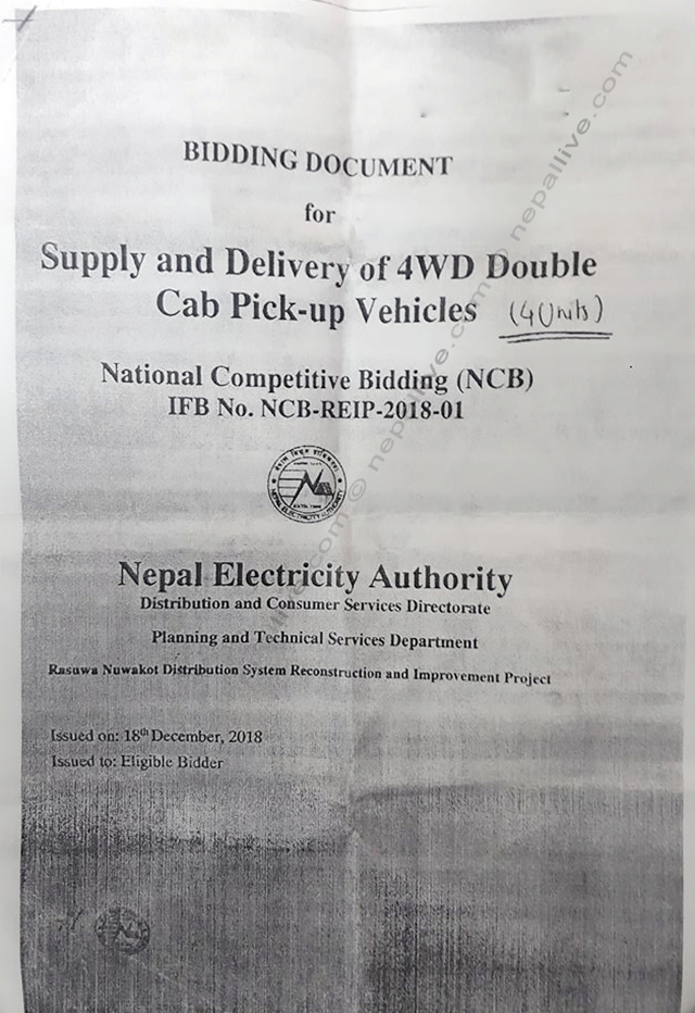 प्राधिकरणले तय गरेको स्पेसिफिकेसनको आधारमा पिकअप बिक्री गर्दै आएका निसान, इसुजु, महिन्द्रा र फोर्ड गाडी कम्पनी टेन्डर प्रक्रियामा सहभागी हुनसक्ने अवस्था रहँदैन।