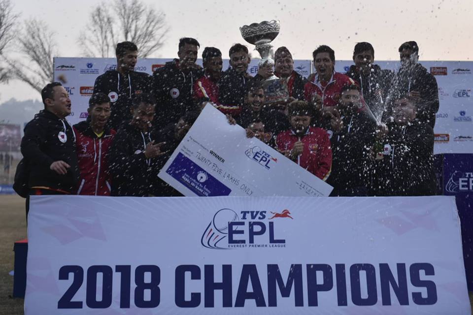 काठमाडौं- एभरेस्ट प्रिमियर लिग (इपिएल) टी-२० क्रिकेट प्रतियोगिताको उपाधि ललितपुर प्याट्रिओट्सले जितेको छ। शनिबार कीर्तिपुरस्थित टियु मैदानमा भएको खेलमा तेस्रो संस्करणको उपाधि जित्ने क्रममा ललितपुरले दोस्रो संस्करणको उपविजेता भैरहवा ग्लाडिएटर्सलाई १४ रनले पराजित गरेको हो।
