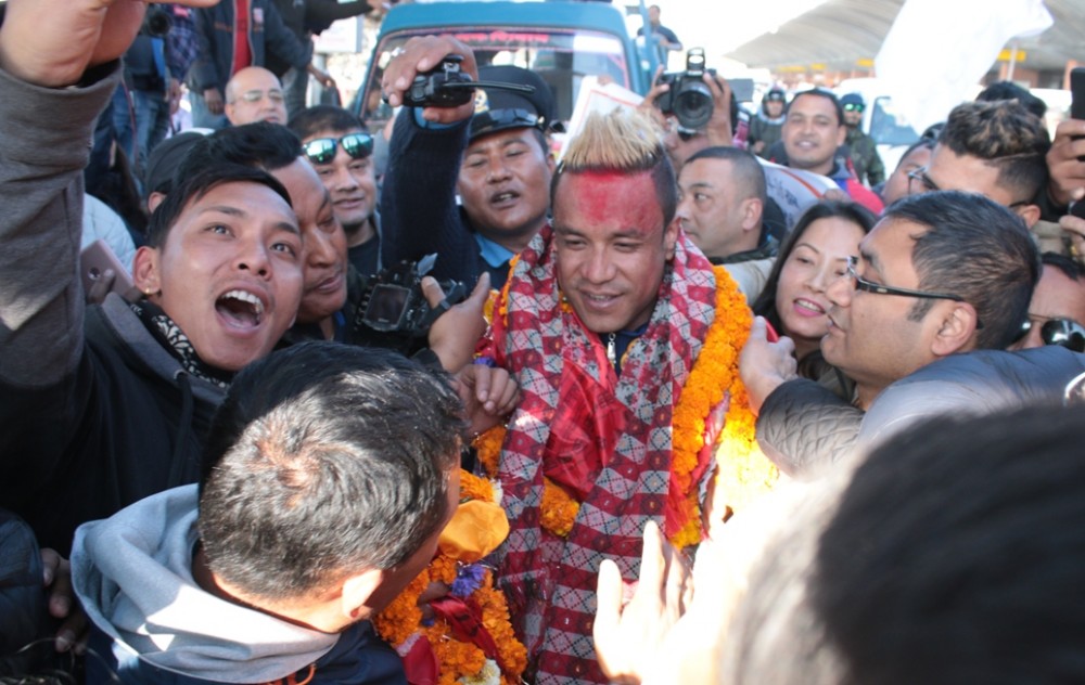 महर्जन मंघरबार स्वदेश फर्किएका थिए। उनलाई विमानस्थलमा भव्य स्वागत गरिएको थियो।