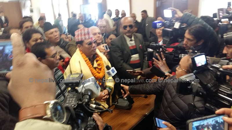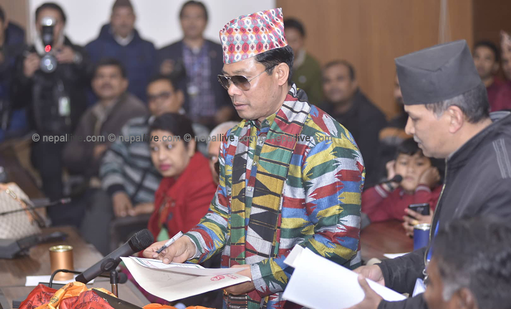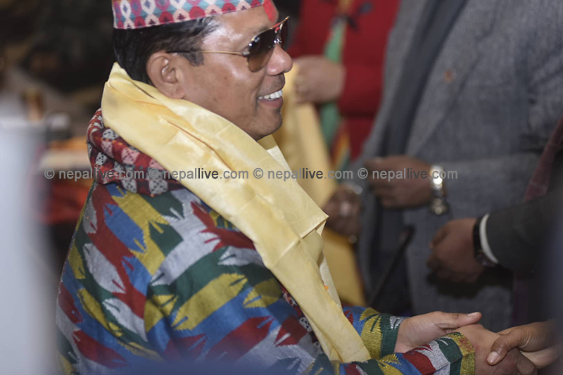 ढाकाको कोट, मफलर र ढाकाटोपीमै प्रफुल्ल मुद्रामा आएका उनी सुरुमा संघीय सचिवालय हुँदै सपथ स्थलमा प्रवेश गरे। पुरानो संसद भवनको क्यान्टिनको माथिल्लो भागमा सपथ कार्यक्रम राखिएको थियो।