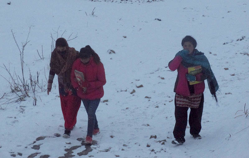 हुम्ला– आइतबार राति ८ बजेदेखि परेको हिमपातले हिमाली जिल्ला हुम्लाको जनजीवन प्रभावित बन्दै गएको छ।