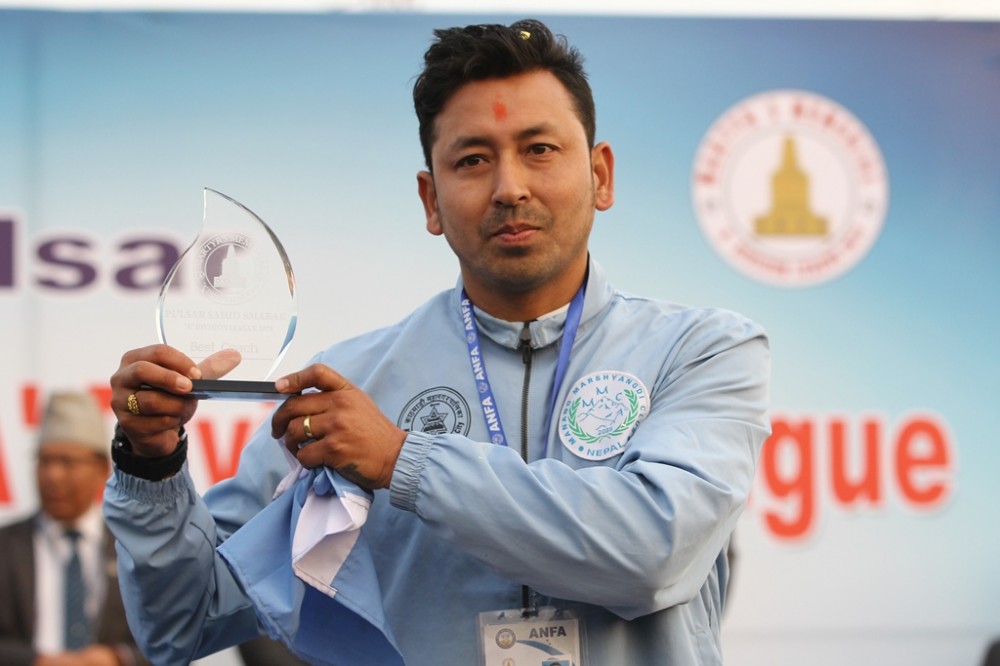 मनाङलाई लिग च्याम्पियन बनाएका सुमन श्रेष्ठले उत्कृष्ट प्रशिक्षकको अवार्ड हात पारे।